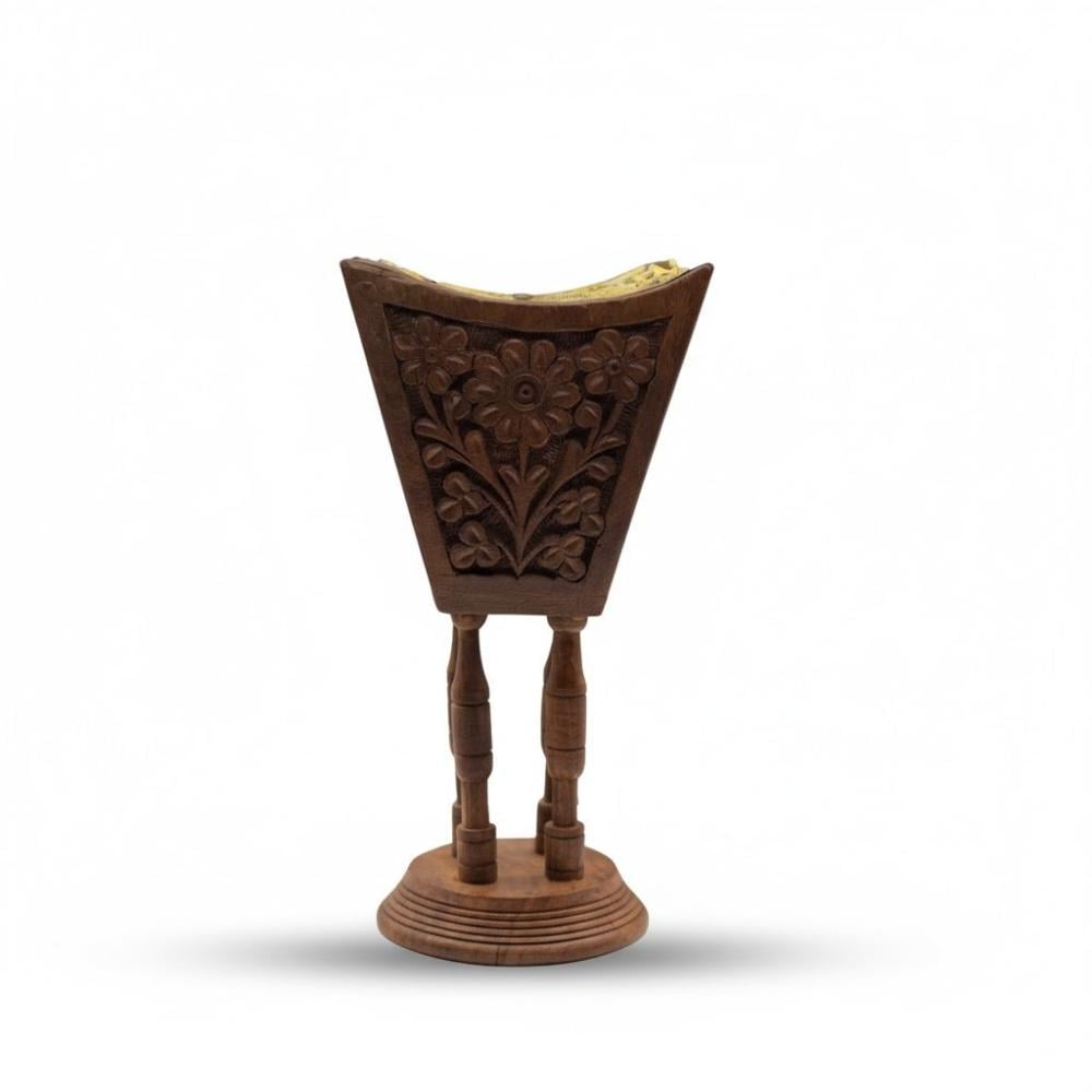 تتميز المبخرة بلونها البني الغني، الذي يبرز جمال الخشب الطبيعي المستخدم في صنعها. النسيج الخشبي المصقول يعكس لمسة من الفخامة، بينما يضفي النقش اليدوي المعقد طابعًا فنيًا فريدًا. تصميمها ذو الزوايا المنحنية يضيف لمسة من الأناقة، مما يجعلها سهلة الاستخدام وجذابة للنظر.