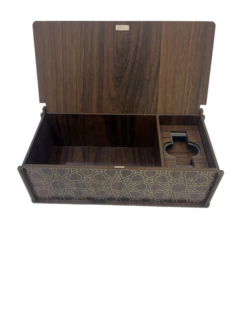 علبة خشبية مناسب للتوزيعات و للإهداء بنقش إسلامي تتسع لربع تولة و ثمن كيلو